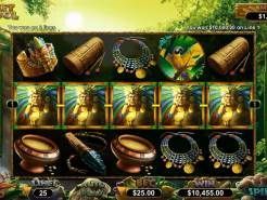 The symbols you'll encounter include the Aztec Chief (the highest-paying regular symbol), along with various cultural artifacts like drums, bowls, and necklaces. The colorful parrot adds a touch of the exotic rainforest environment. Each symbol has been carefully designed to reflect authentic Aztec imagery while providing clear visual distinction during gameplay.